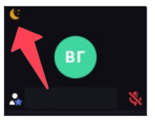 Значок полумесяца появляется, когда пользователь не совершает никаких действий на платформе (не вкл/выкл камеру/микрофон, не пишет в чат, в стикер, не ставит реакции и т.д.)