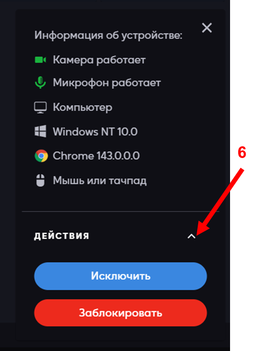 6. Посмотреть информацию об устройстве пользователя и заблокировать или исключить его при необходимости (6).