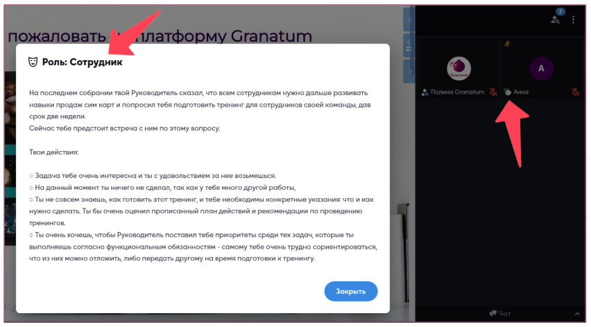 В ролевой игре участники могут практиковать разнообразные сценарии взаимодействия: вести переговоры с коллегами, общаться с клиентами, руководить подчинёнными и так далее. Эти ситуации можно настроить в соответствии с вашими целями и задачами.