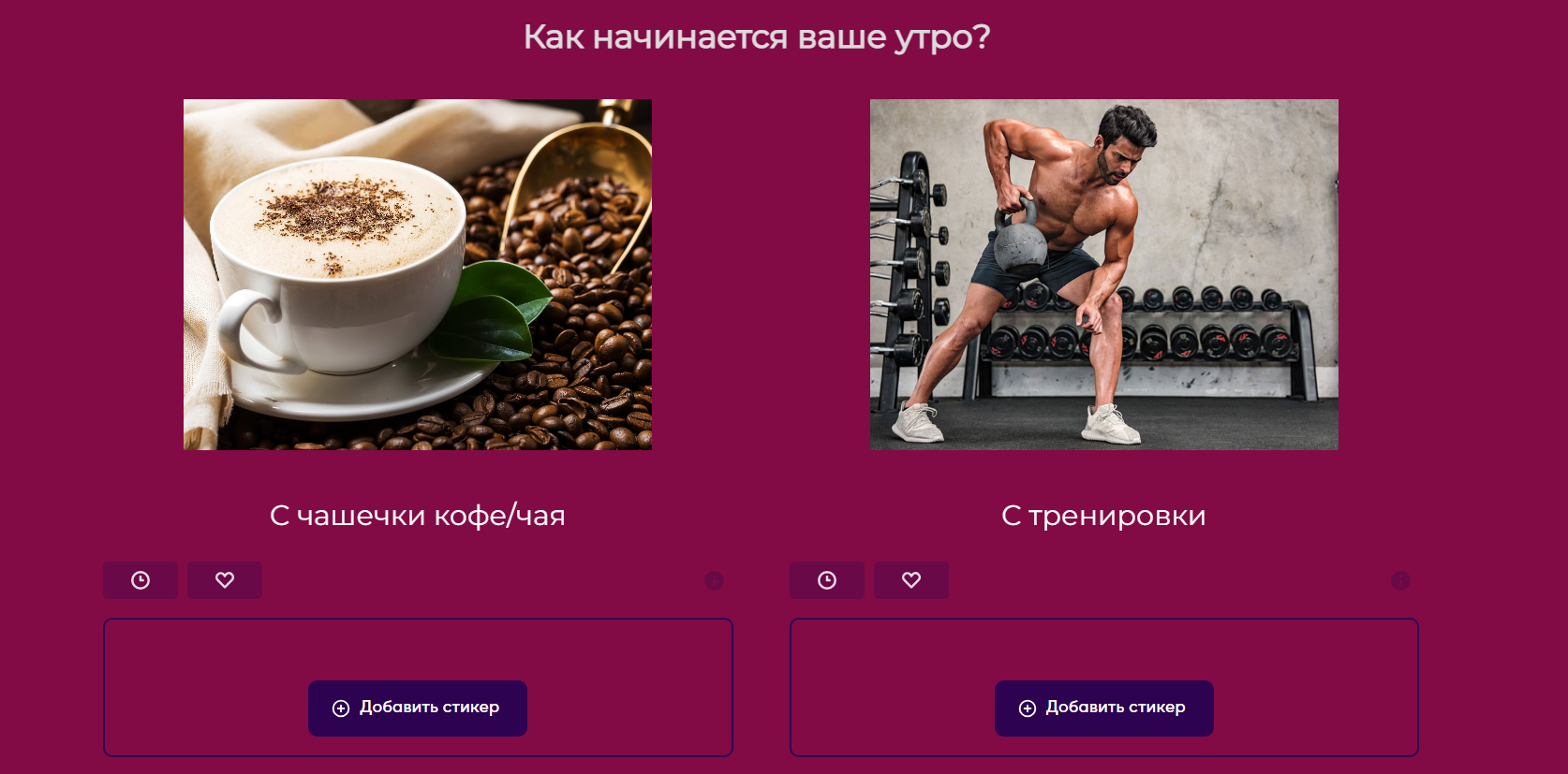 Интерактивные виджеты — это контейнеры для стикеров, они уже присутствуют в блоке и отдельно их добавлять не нужно. Обычный пользователь может добавить стикер в контейнер, скорректировать содержание стикера и переместить стикер из одного контейнера в другой.