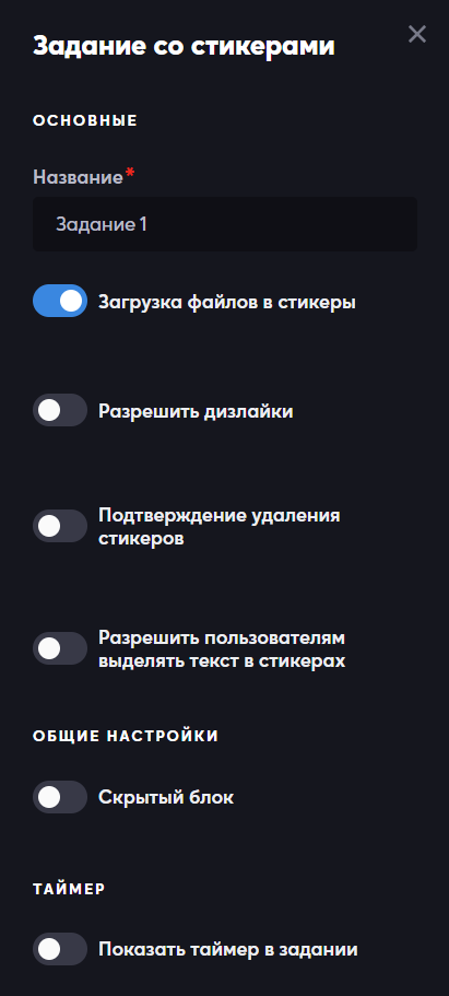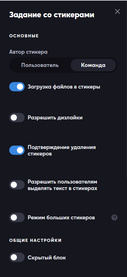 В блоке задания стикеры можно добавлять, нажав на кнопку «Добавить стикер».