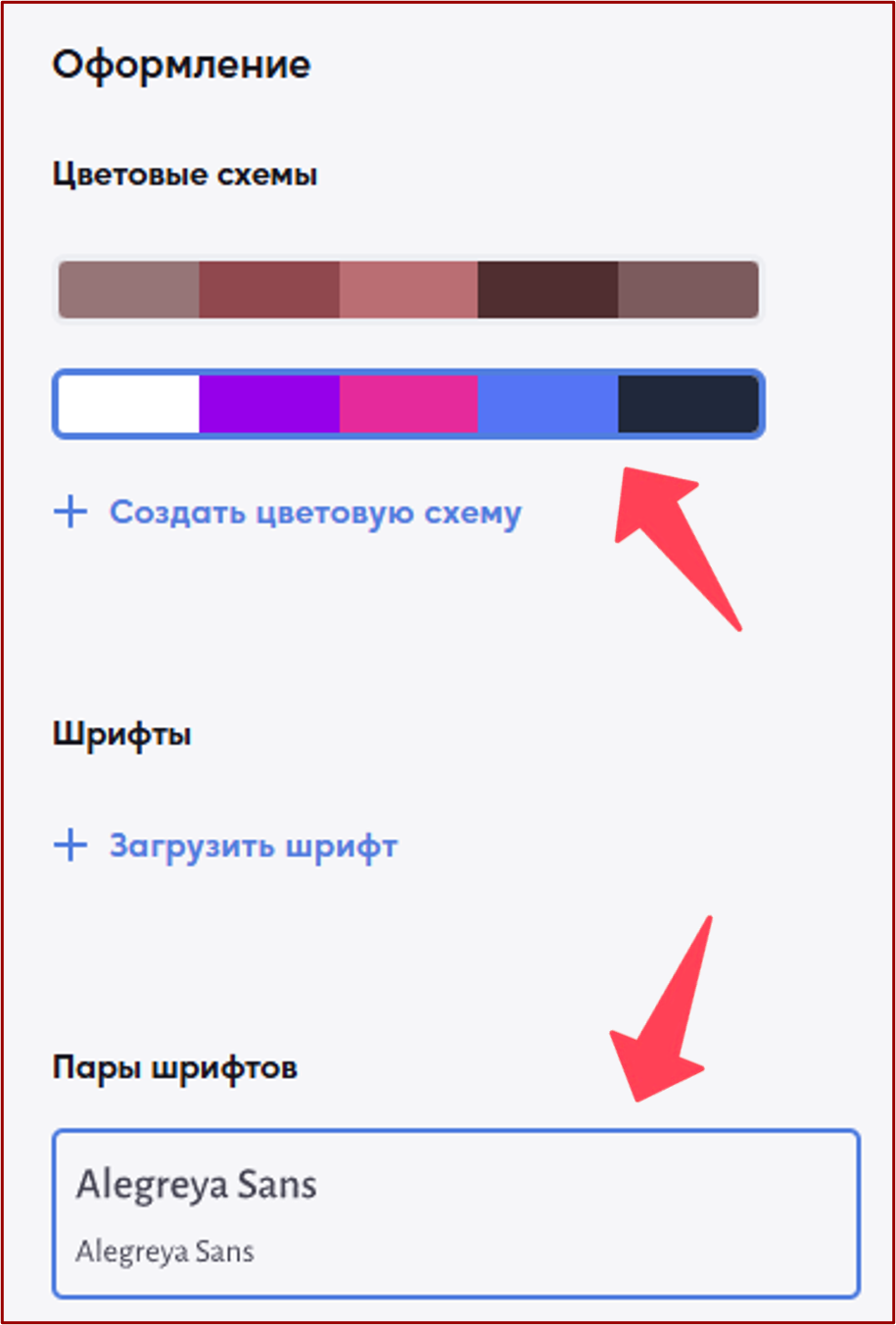 Цветовые схемы и пары шрифтов
