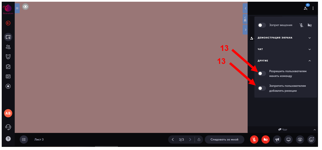 - Разрешить пользователям менять команду (13);
