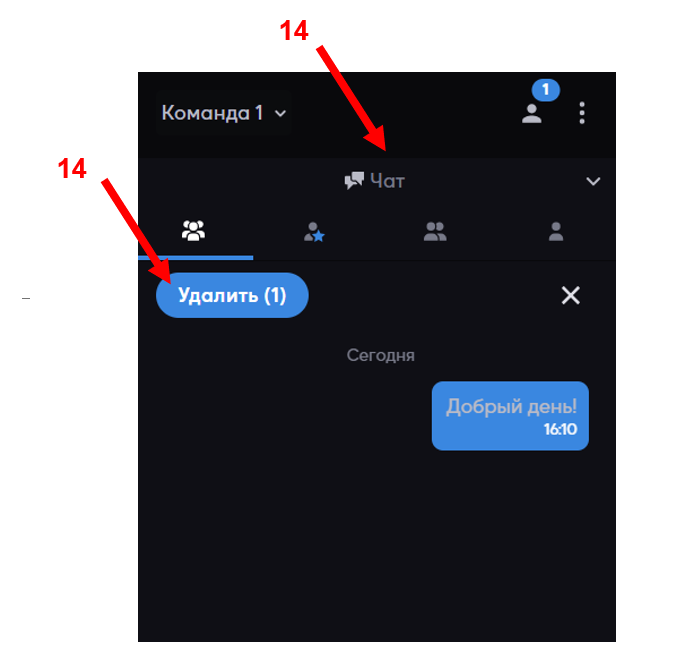 - Пользоваться всеми видами чатов и очищать их: общий, для администраторов , индивидуальный и командный (14);